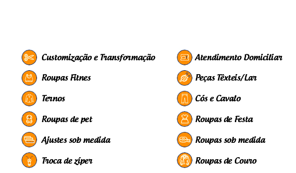 Café e CosturaDe que adianta uma ótima roupa se ela não veste direito? Em nossa Ateliê você consegue o caimento perfeito. Oferecemos serviços simples como conserto de botões, remendos, consertos de costuras, bainhas, etc., bem como trabalhos mais elaborados como ajustar uma jaqueta esportiva, encurtar vestidos ou afinar vestidos para que fiquem justos...